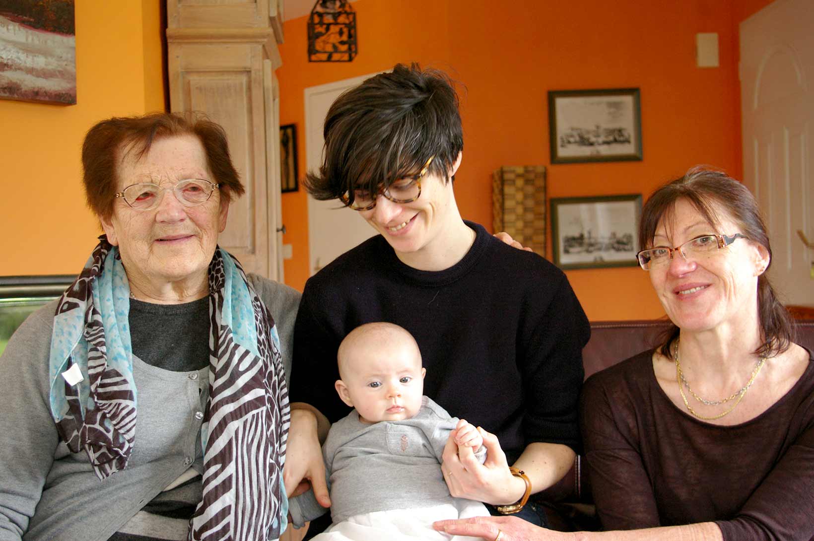 Les quatre générations : avec Mémère, maman et Mamicat.